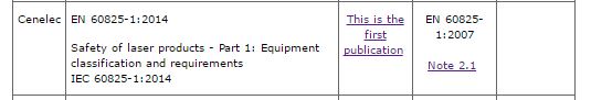 2017年12月31日最后一欄中的數(shù)字是指可交付成果到期的日期,很快就會(huì)有消費(fèi)者激光器的特定安全標(biāo)準(zhǔn),這意味著超出另一個(gè)安全指令(如LVD)范圍的激光產(chǎn)品將需要符合特定的激光安全標(biāo)準(zhǔn)才能符合GPSD。